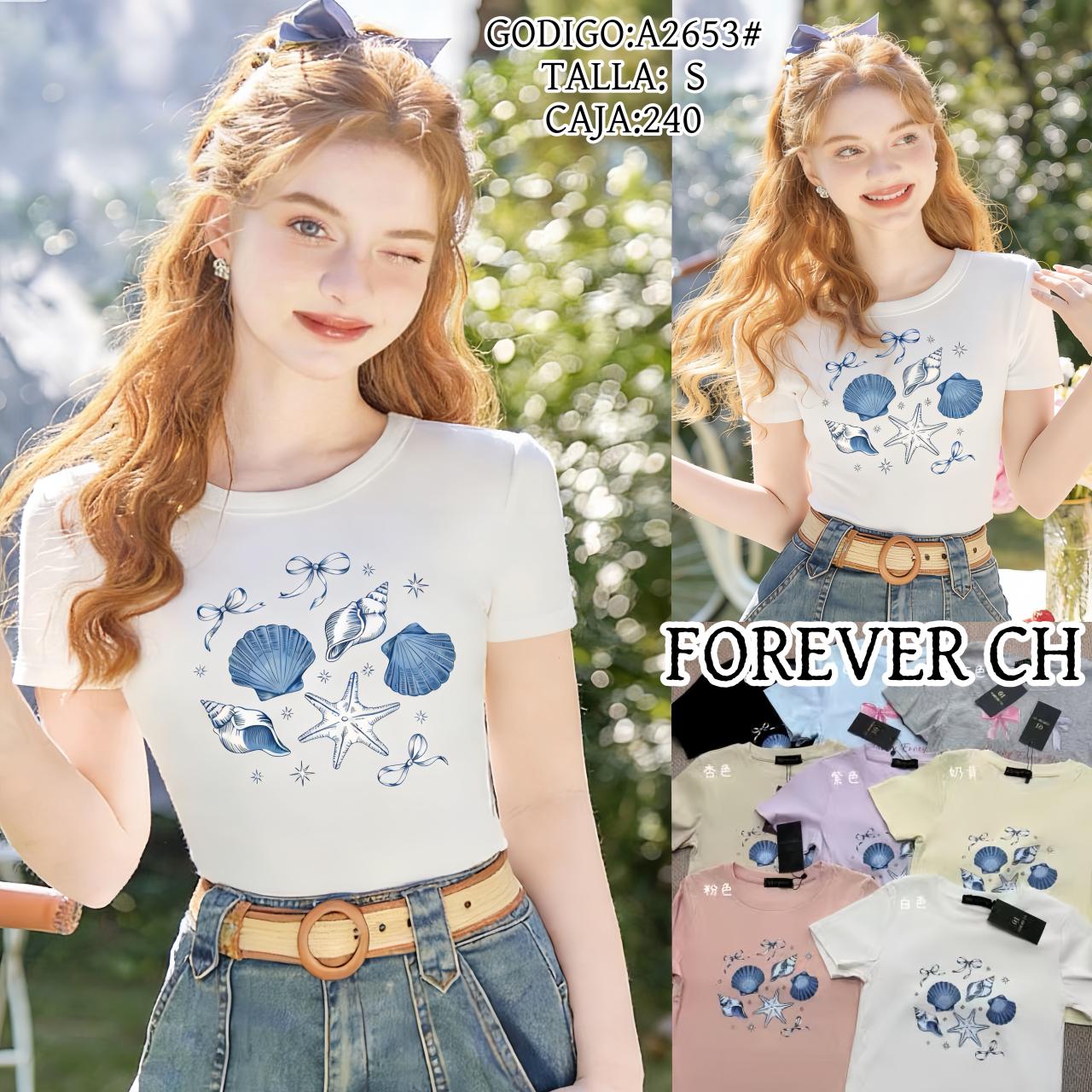 Playera de manga corta con estampado de conchas marinas-A2653
