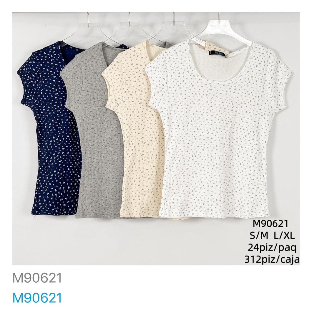 Playera de manga corta con estampado floral-M90621