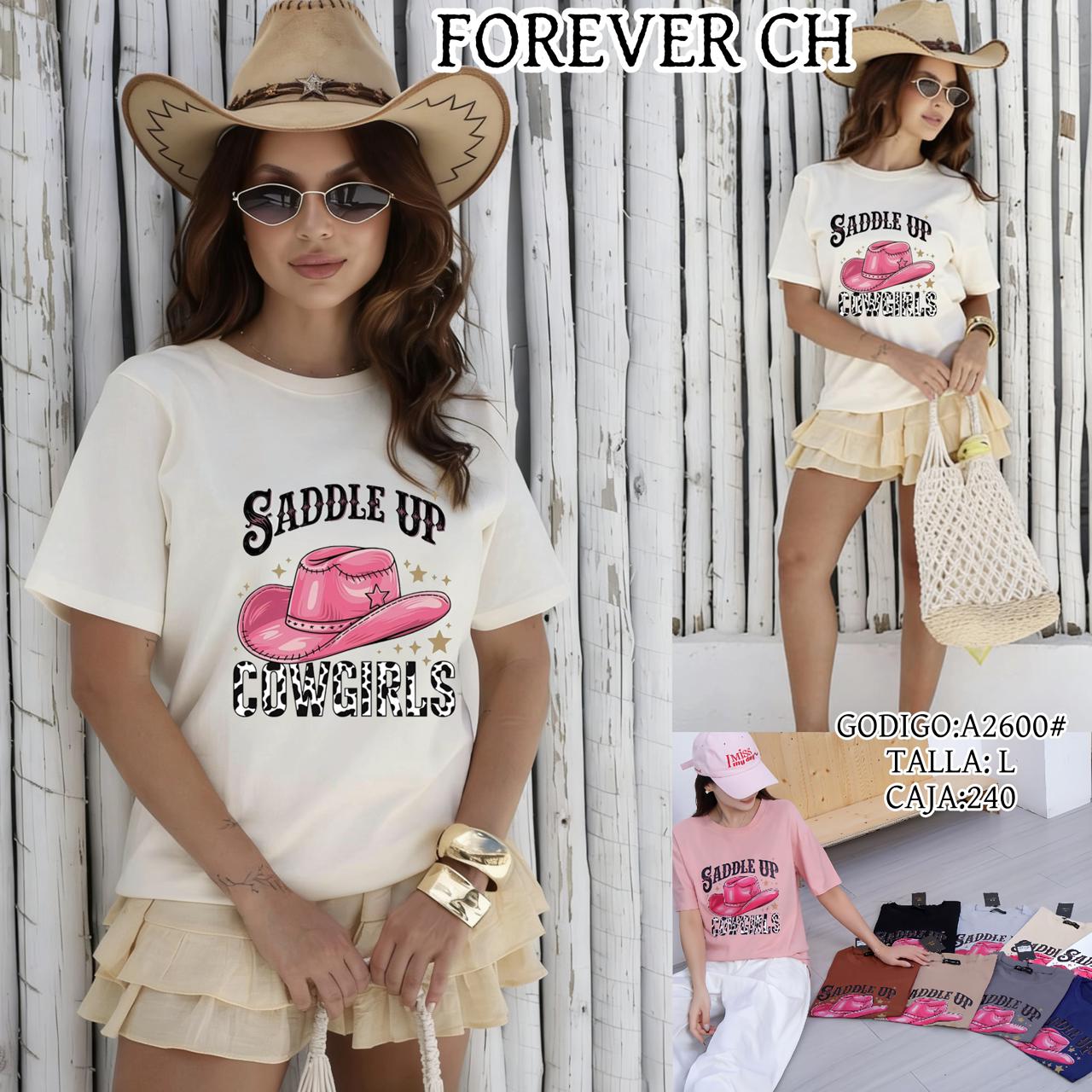 Playera Gráfica ‘Saddle Up Cowgirls’ con Sombrero Vaquero-A2600