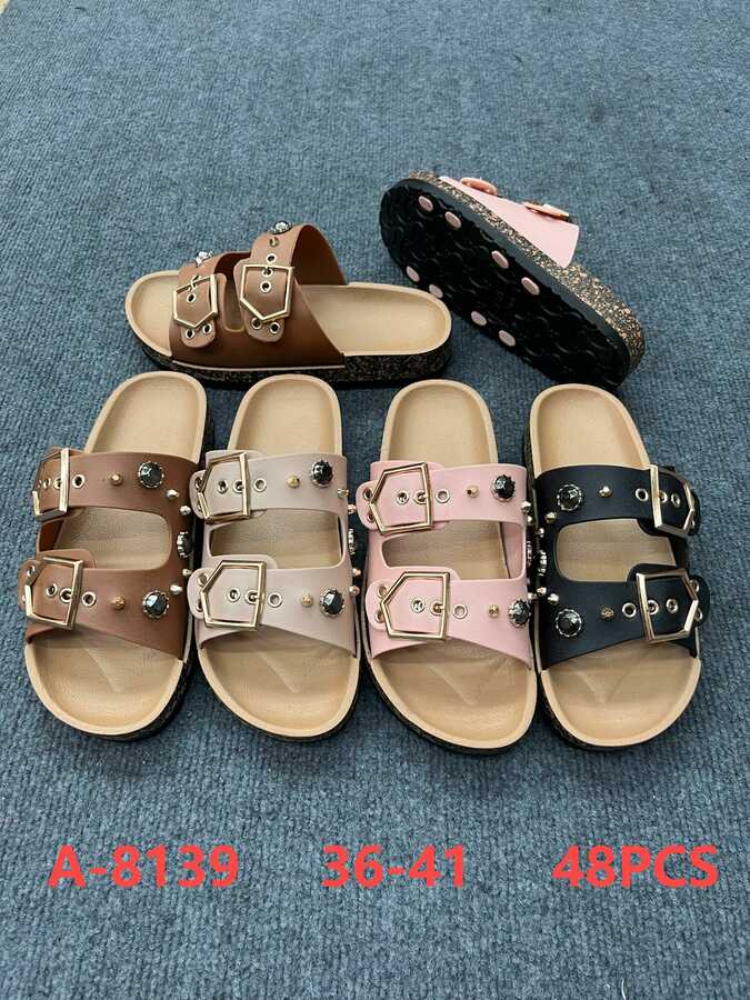 Sandalias de doble tira con hebillas y estoperoles-A-8139