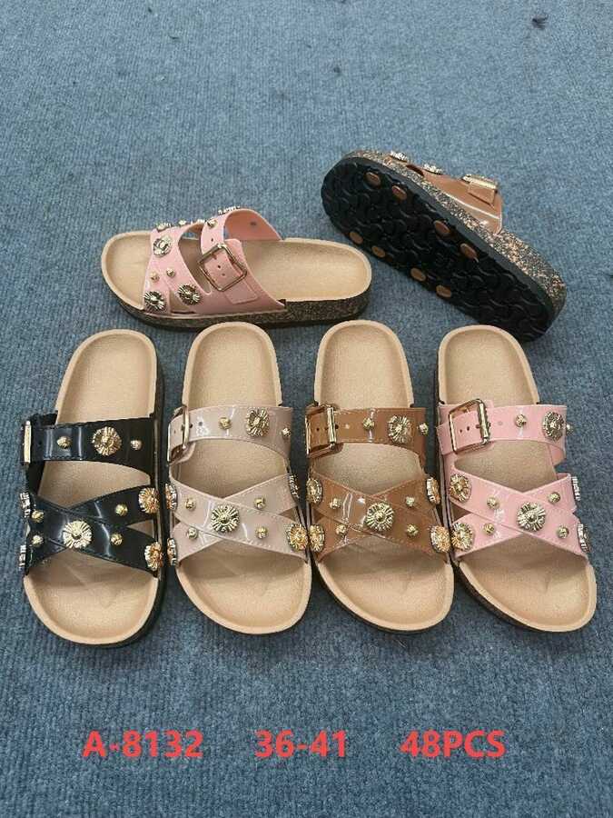 Sandalias de dos tiras con hebilla y detalles metálicos-A-8132