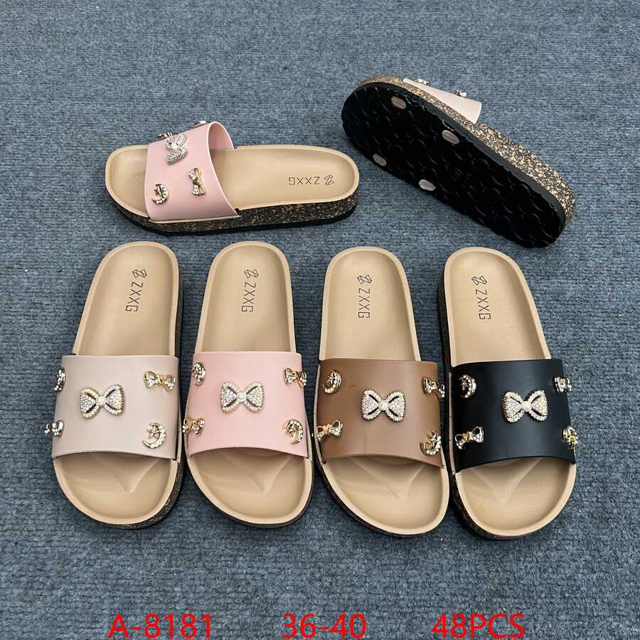 Sandalias de slider con moño y adornos-A-8181
