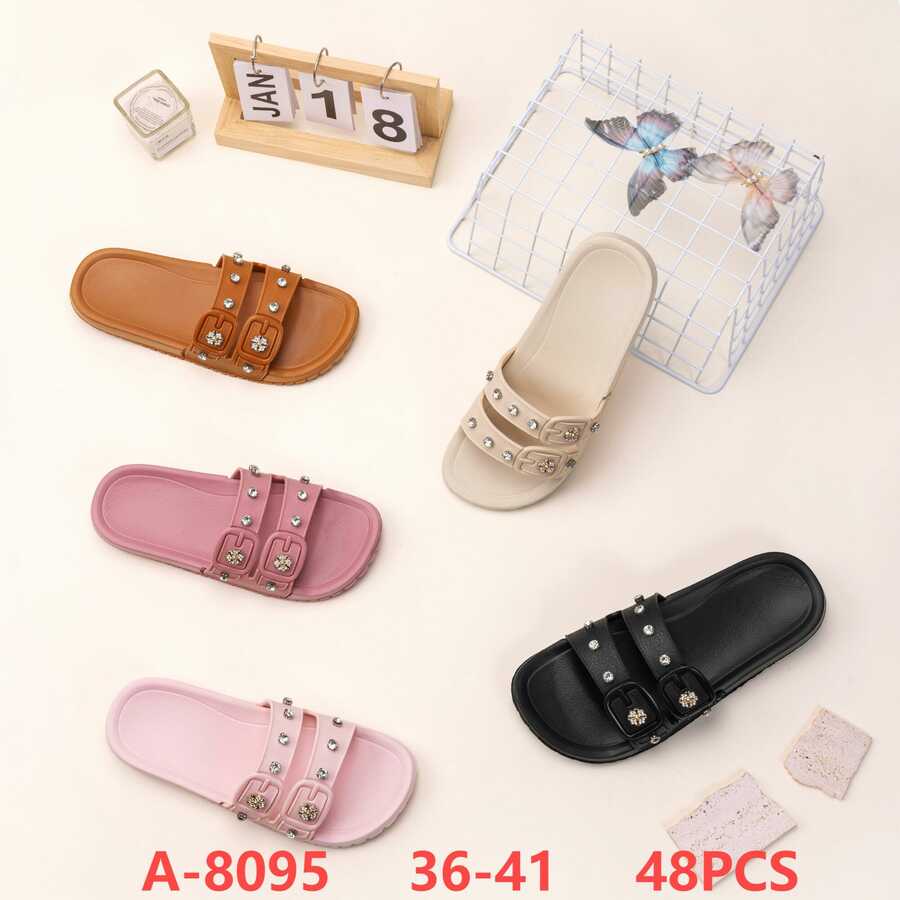 Sandalias de tiras con hebillas y estoperoles-A-8095