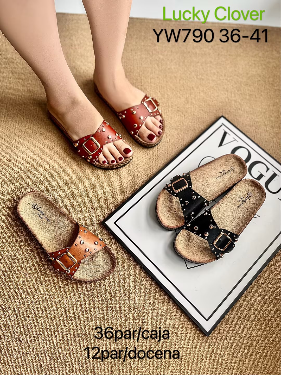 Sandalias tipo mule con hebilla y tachuelas-YW790