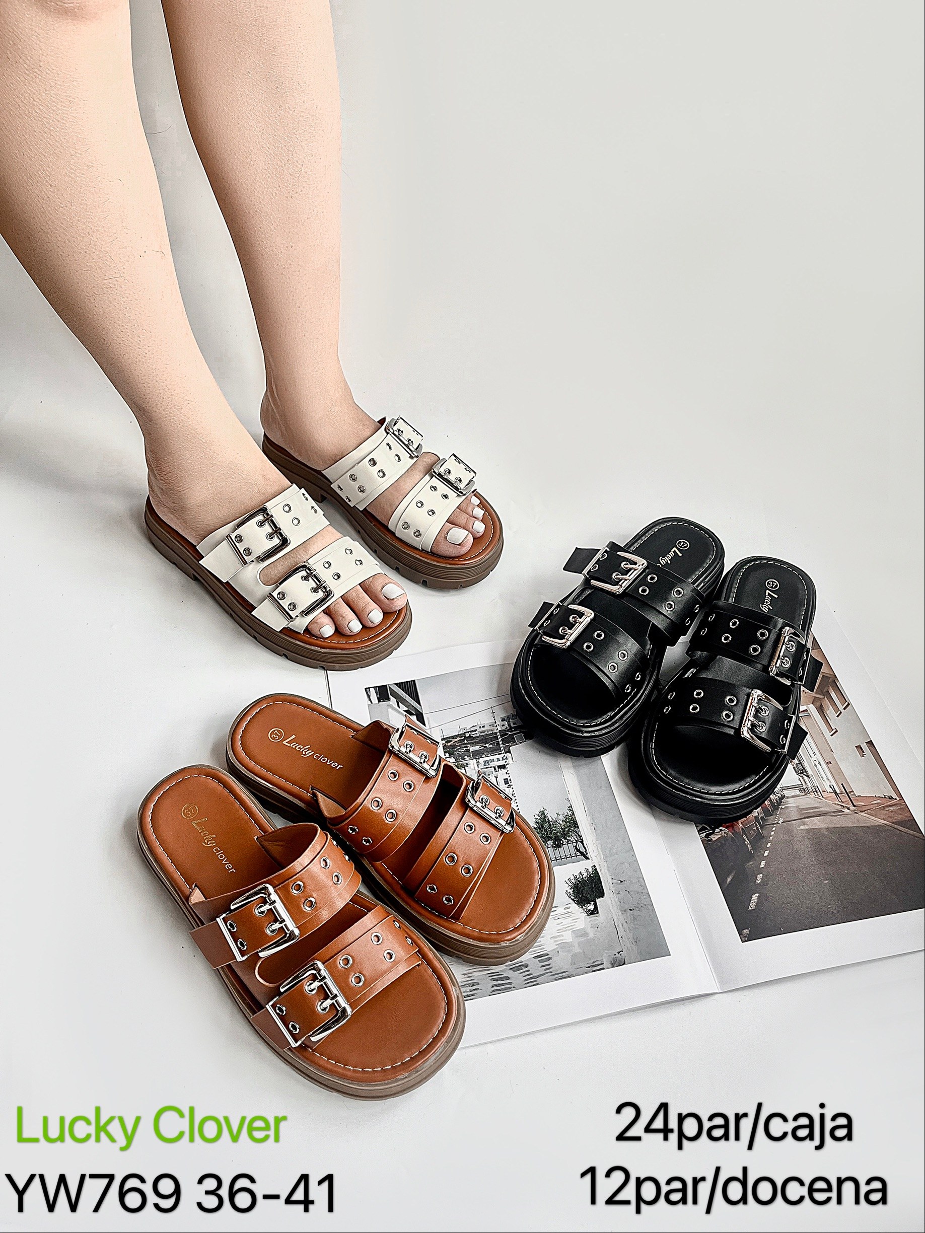 Sandalias tipo mule con hebillas-YW769