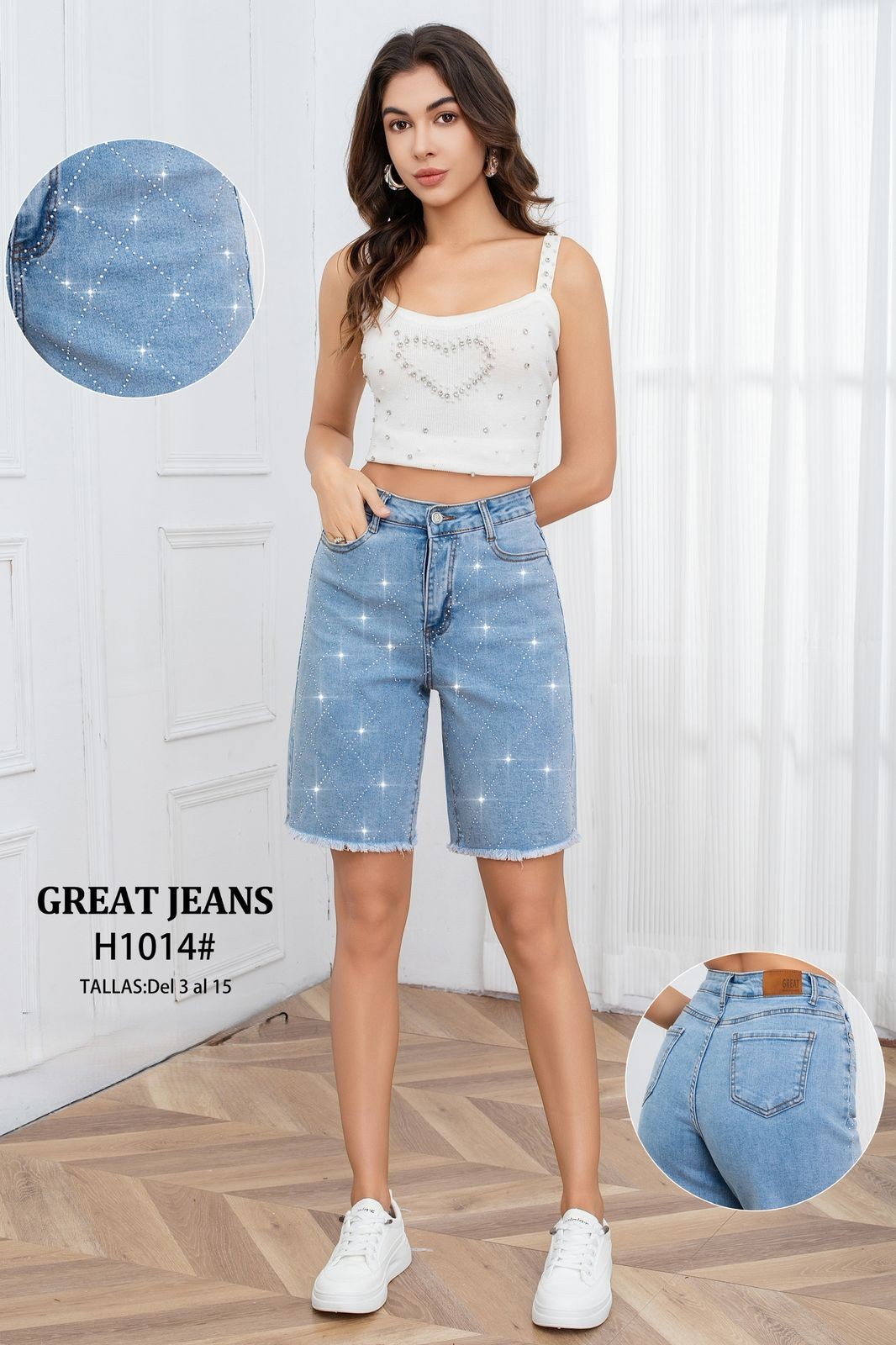 Shorts de jeans con brillantes-H1014