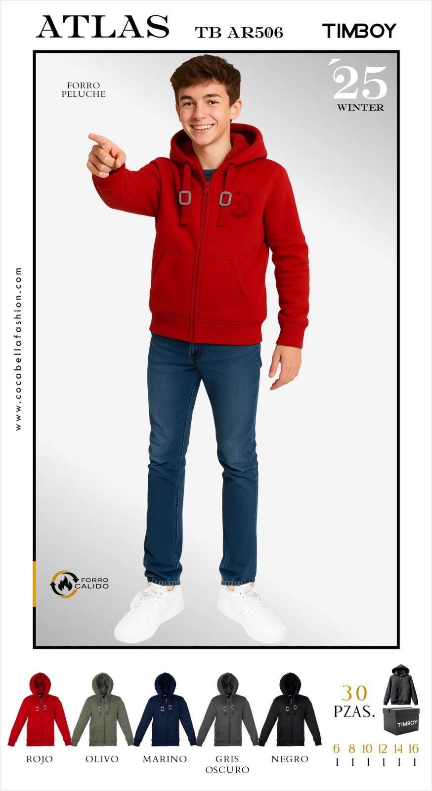 Sudadera con capucha y cierre de felpa con forro cálido Atlas-TB AR506