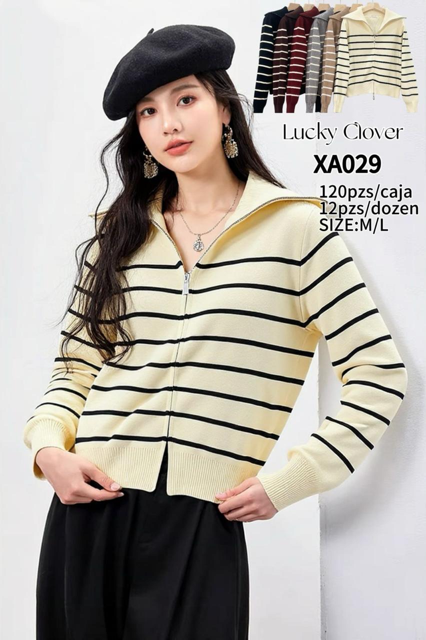 Suéter con cremallera a rayas-XA029