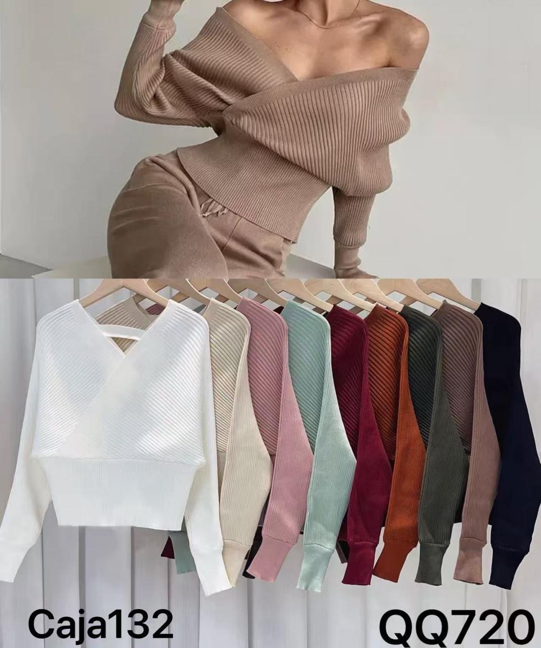 Suéter Cruzado de Canalé Manga Larga-QQ720