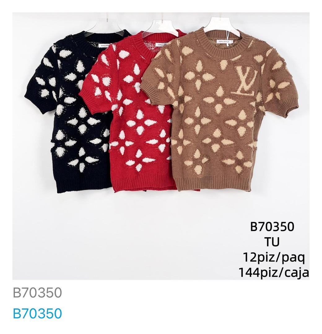 Suéter de manga corta con patrón-B70350