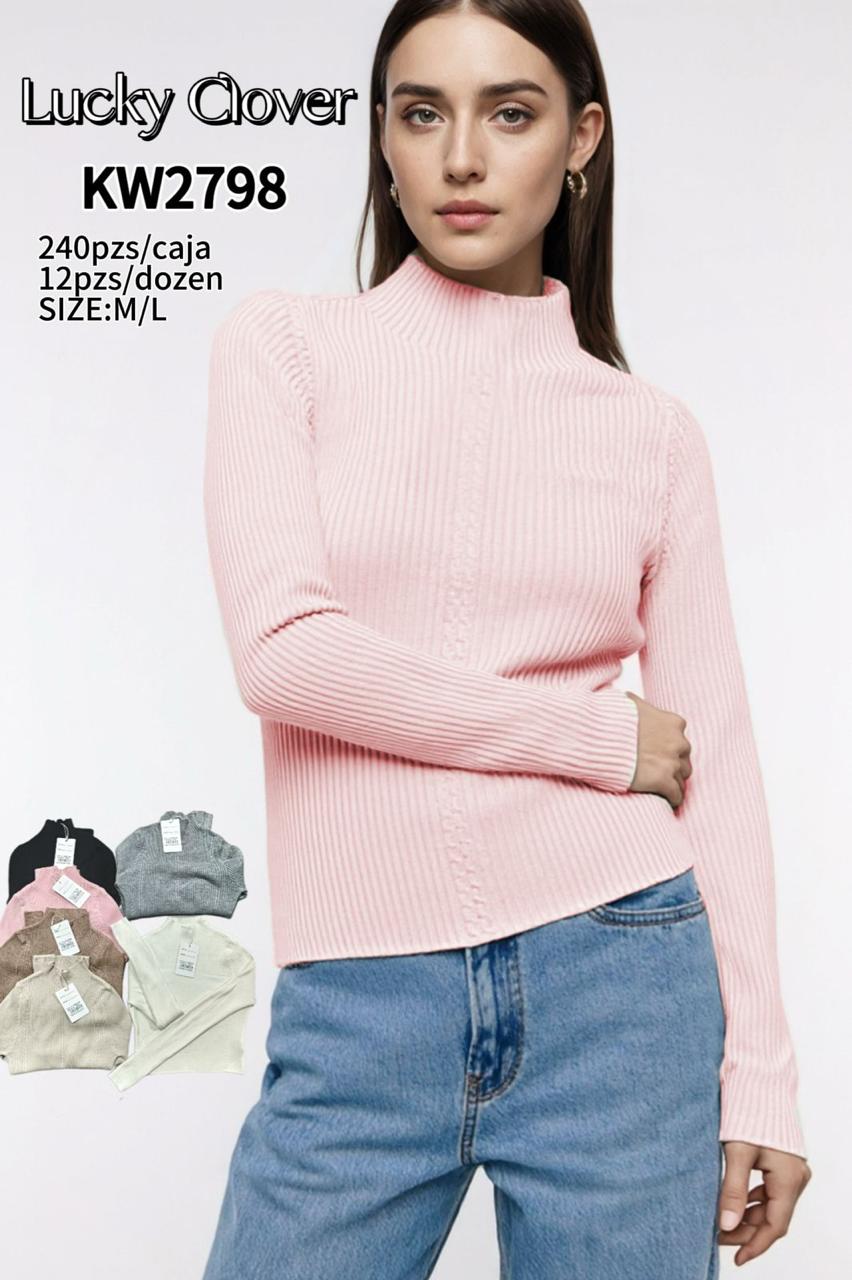 Suéter de punto canalé con cuello alto-KW2798