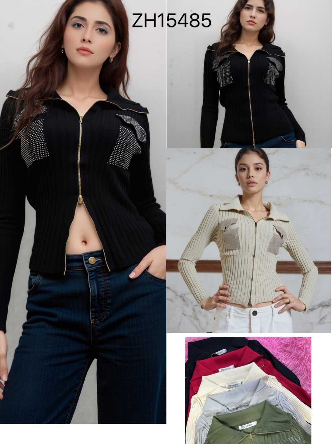 Suéter tipo cárdigan con cremallera y detalles-15485