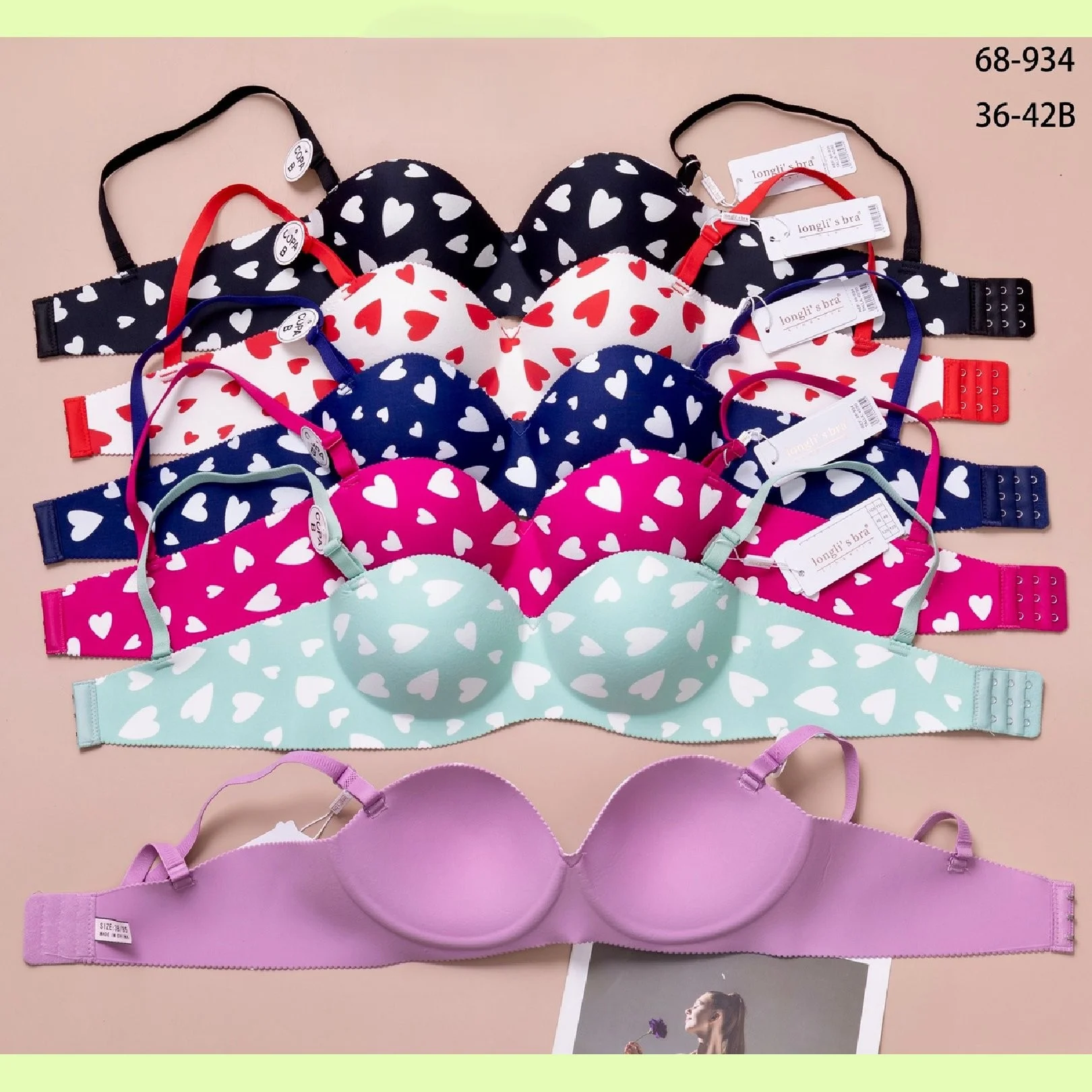 Sujetadores con estampado de corazones-68-934