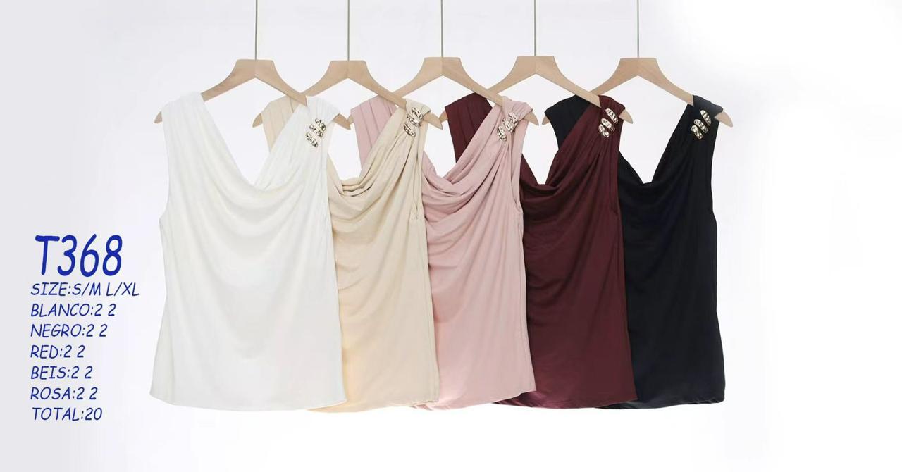 Top con drapeado y adorno metálico-T368