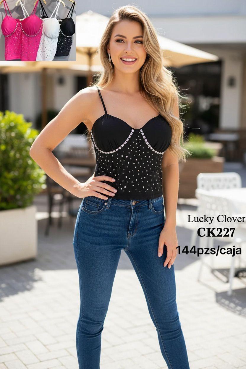 Top con tirantes finos y detalles brillantes-CK227
