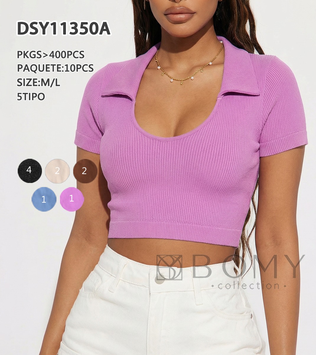 Top de manga corta acanalado con cuello polo-DSY11350A