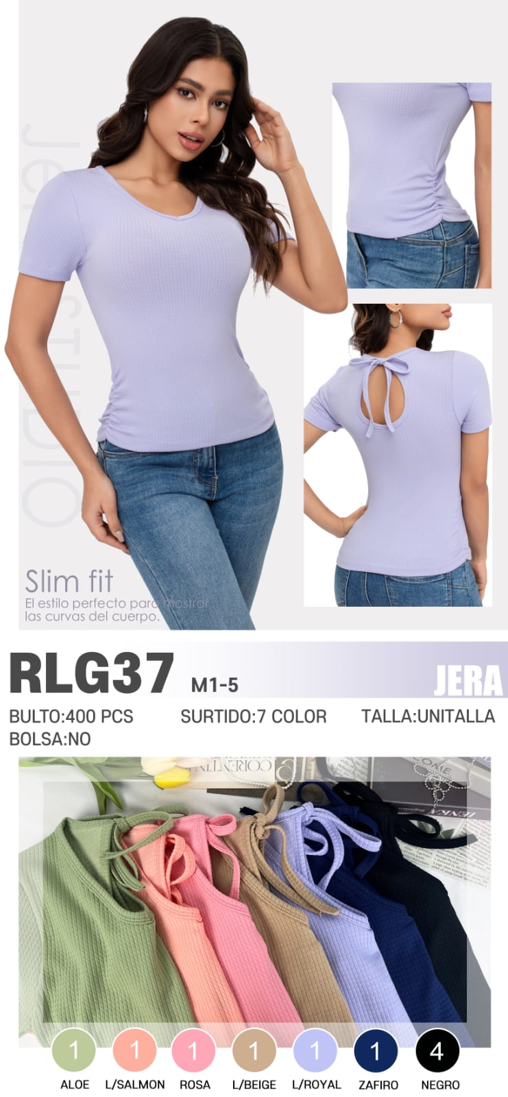 Top de manga corta con cuello V y espalda con moño-RLG37