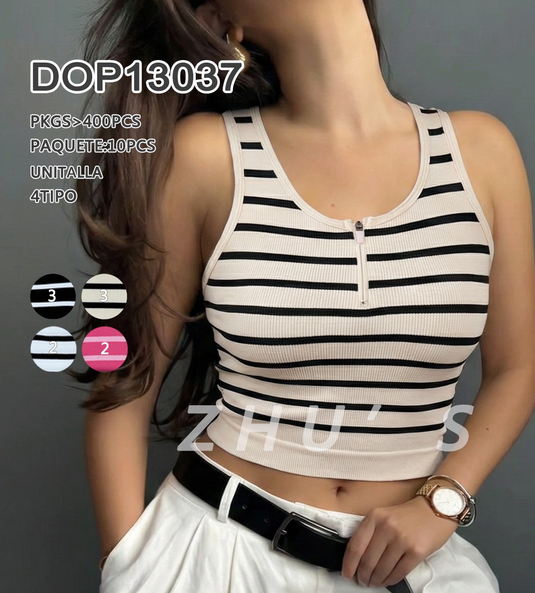 Top de tirantes con cremallera y estampado de rayas-DOP13037
