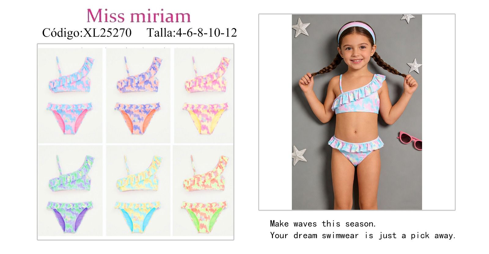 Marca: Miss Miriam, Origen: Importado, Tallas: 4-6-8-10-12, Unidades por paquete: 12 Conjuntos por paquete