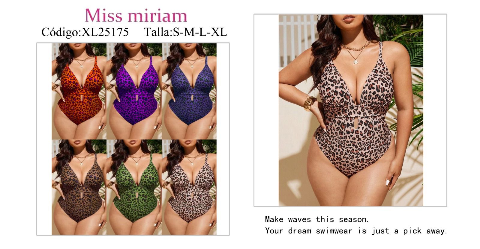 Traje de Baño de Una Pieza con Estampado de Leopardo-XL25175