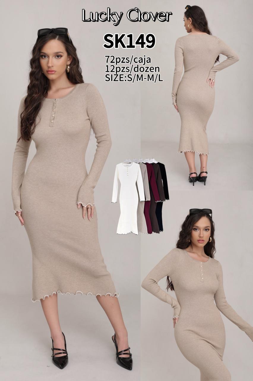 Vestido acanalado con botones-SK149