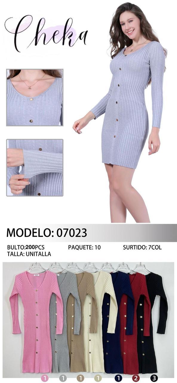 Vestido acanalado de manga larga con botones-VES07023
