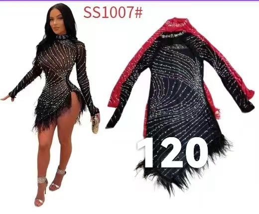 Vestido ajustado con pedrería y flecos-SS1007