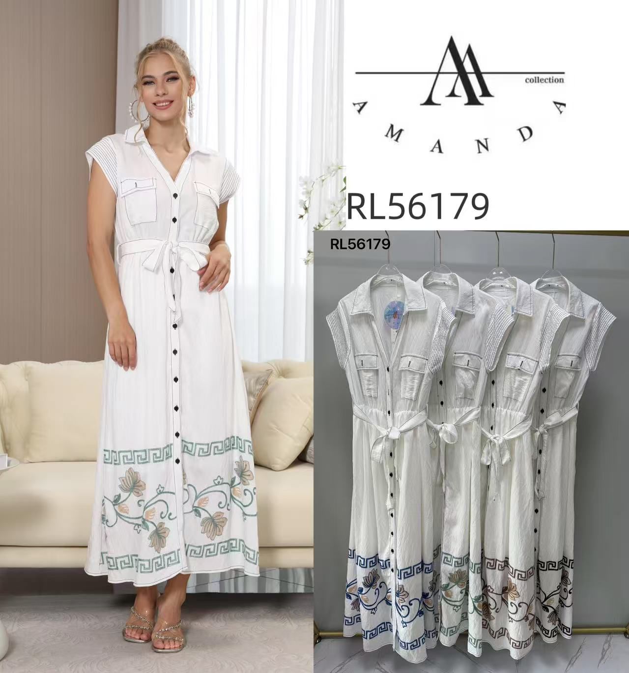 Vestido camisero largo con cinturón y estampado floral-RL56179