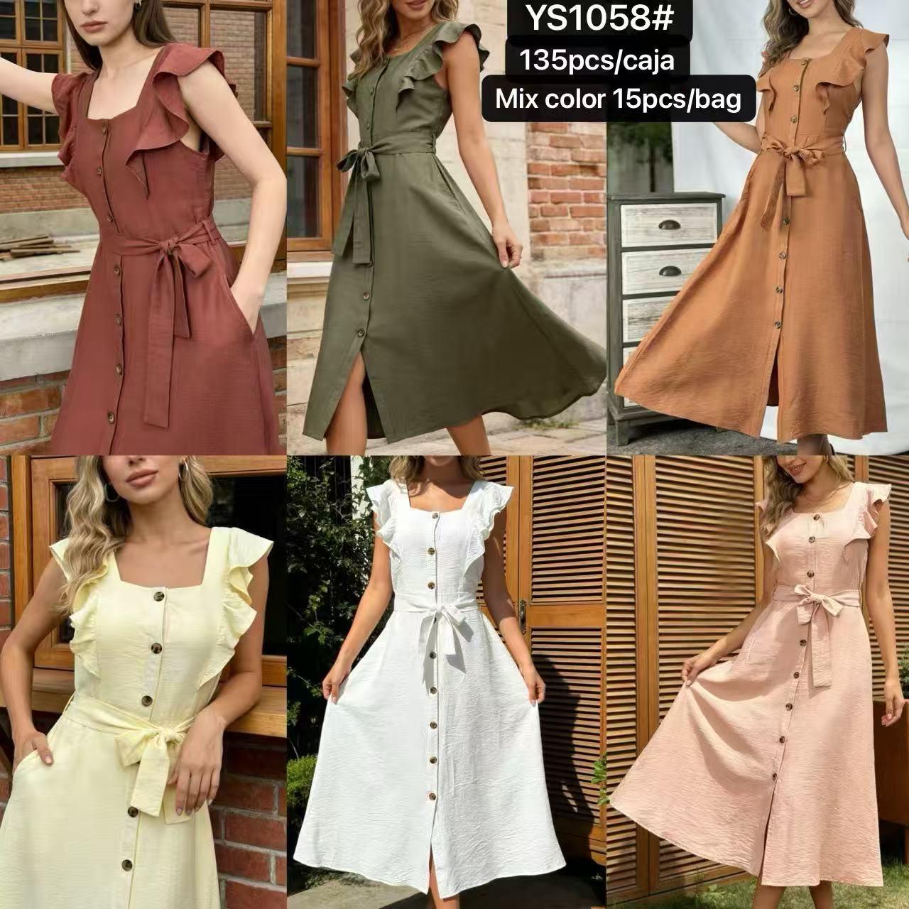 Vestido camisero midi con botones y volantes en las mangas-YS1058