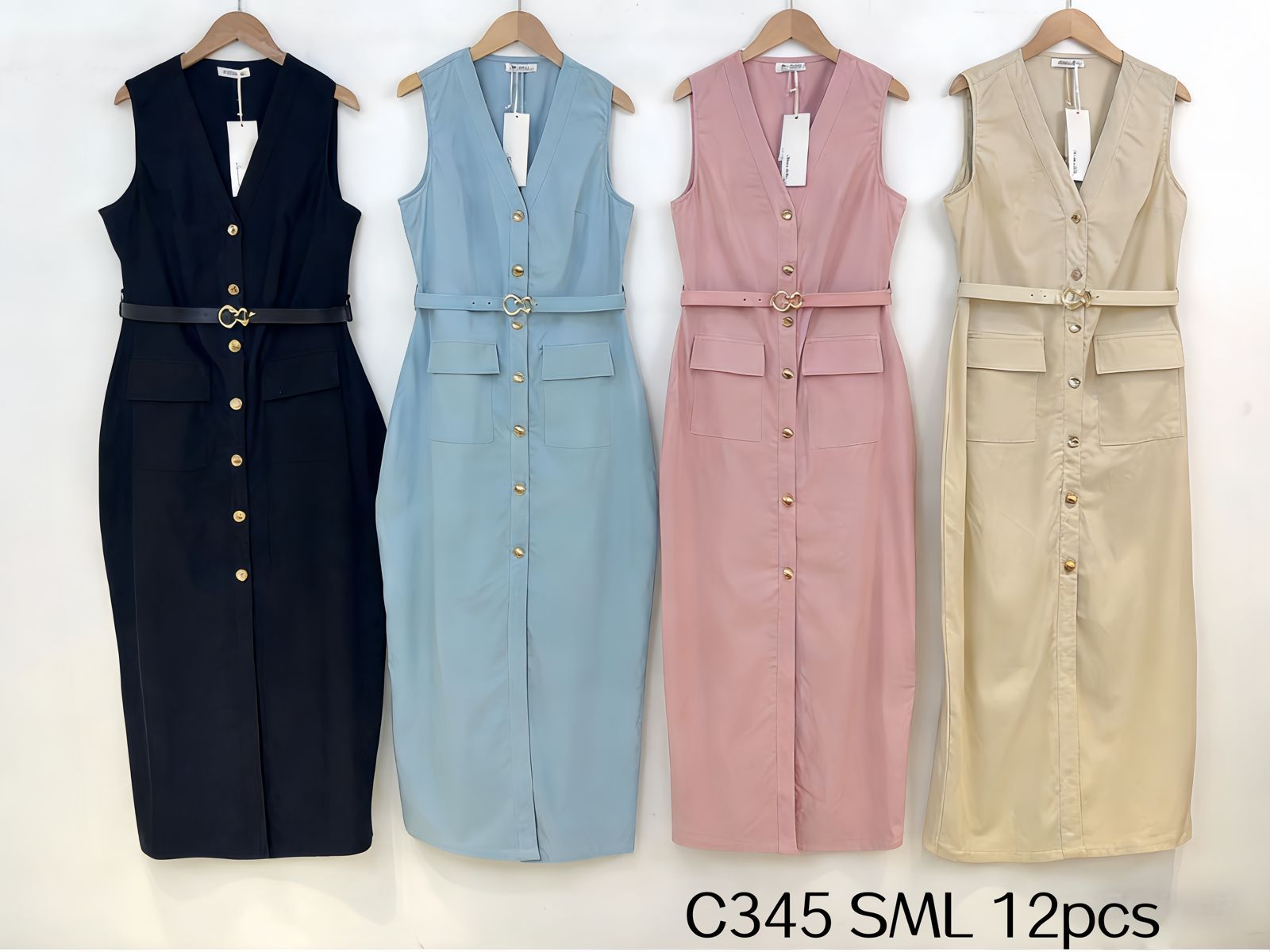 Vestido camisero sin mangas con botones y cinturón-C345