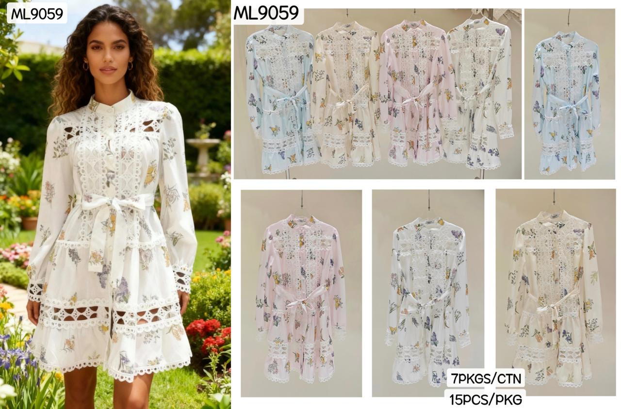 Vestido con estampado floral y encaje-ML9059