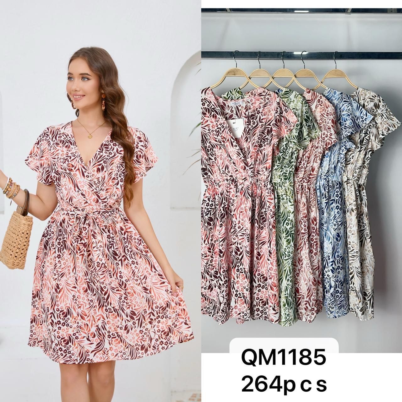 Vestido corto estampado con cinturón-QM1185
