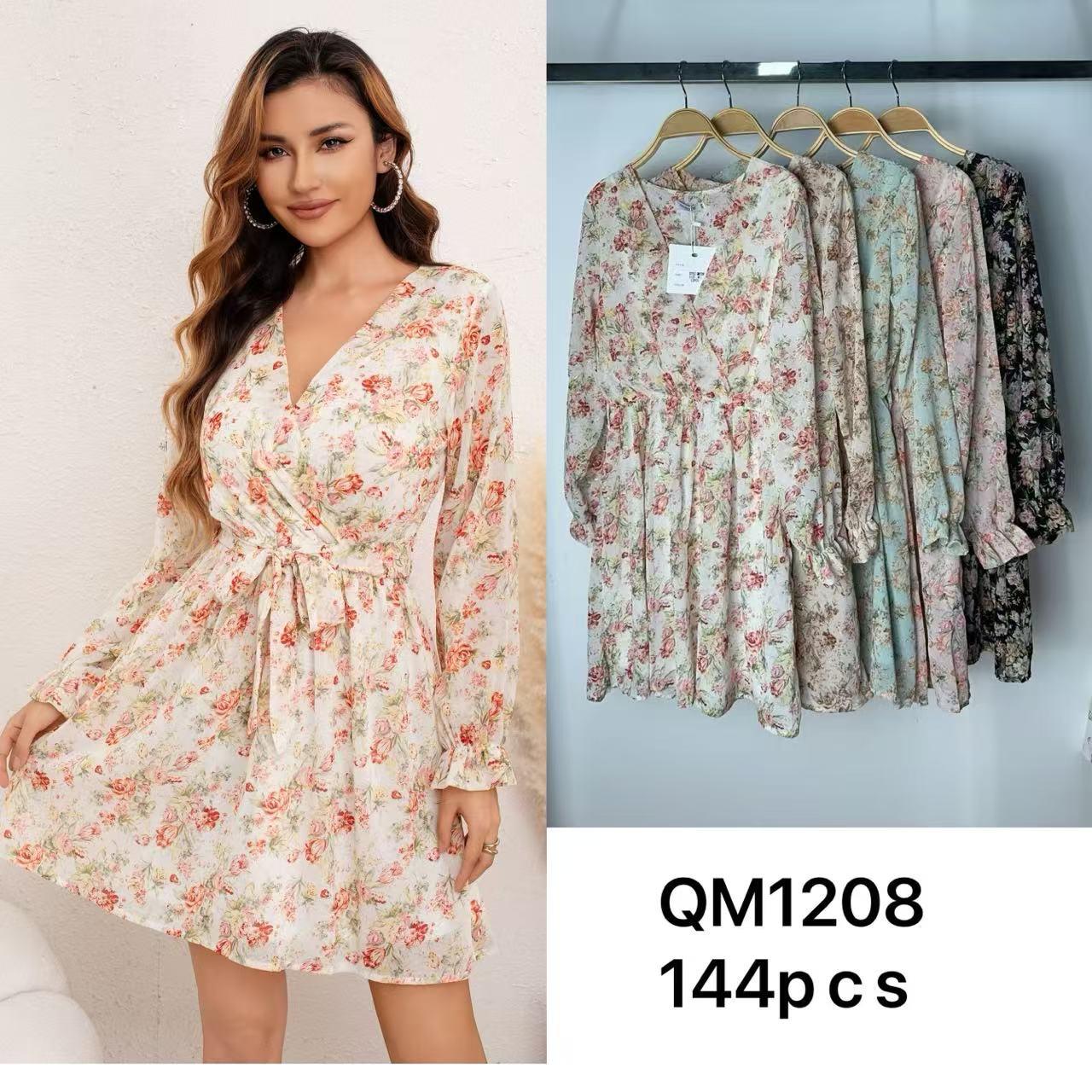 Vestido corto floral de manga larga-QM1208
