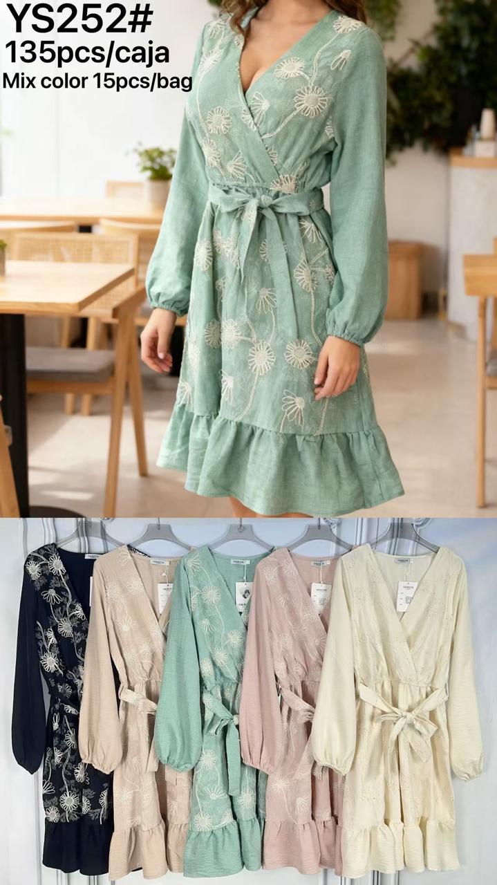 Vestido cruzado con bordado de flores y volante-YS252