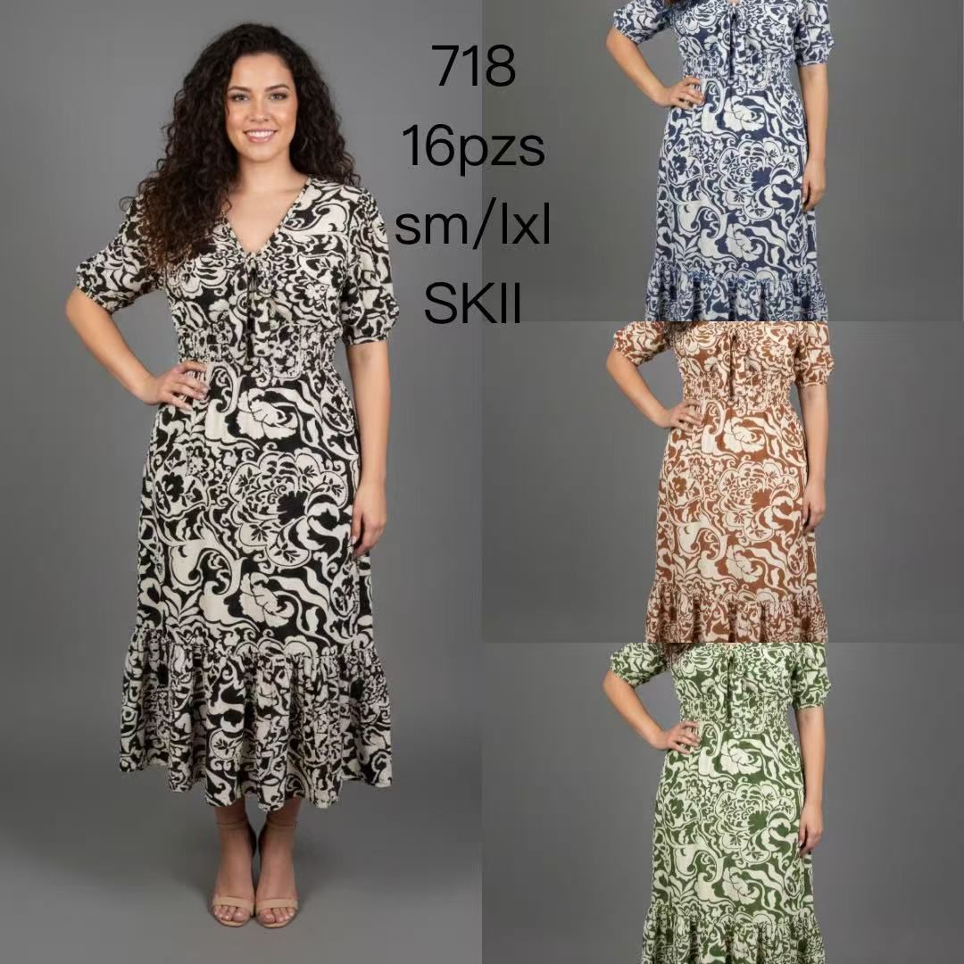 Vestido de manga corta con volantes y estampado-718