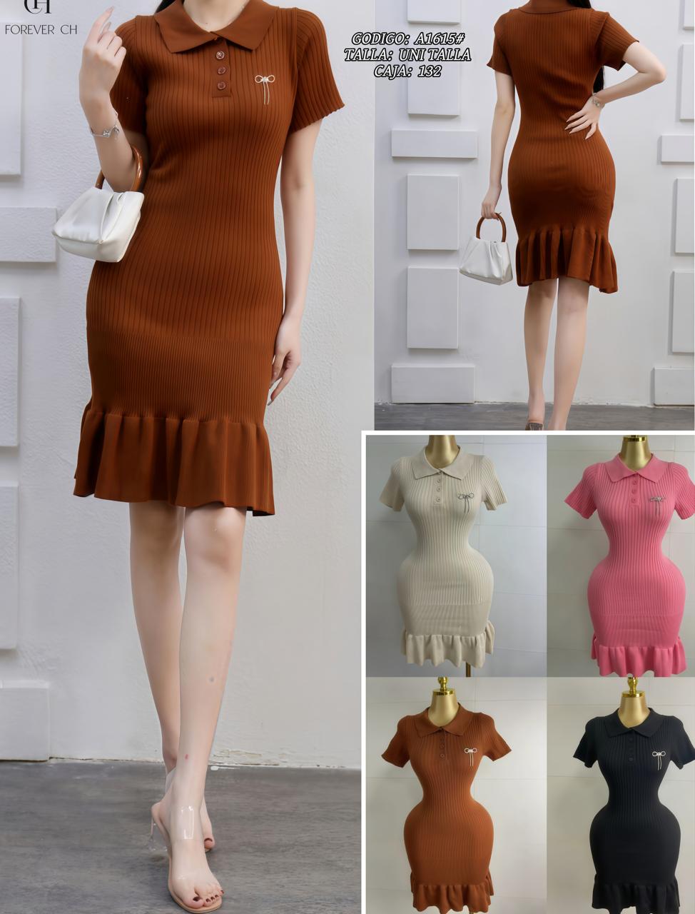 Vestido de punto con cuello-A1615