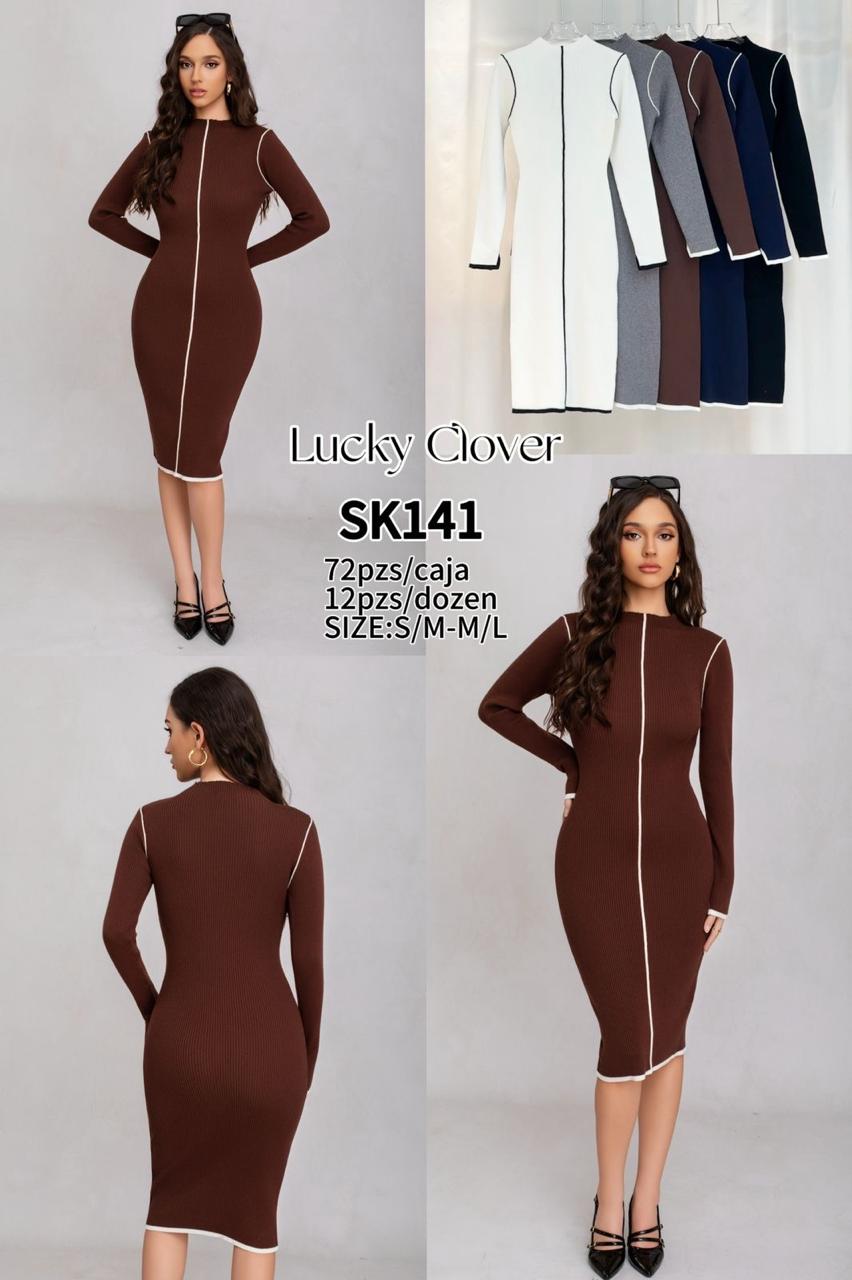 Vestido de punto de manga larga con ribete en contraste-SK141