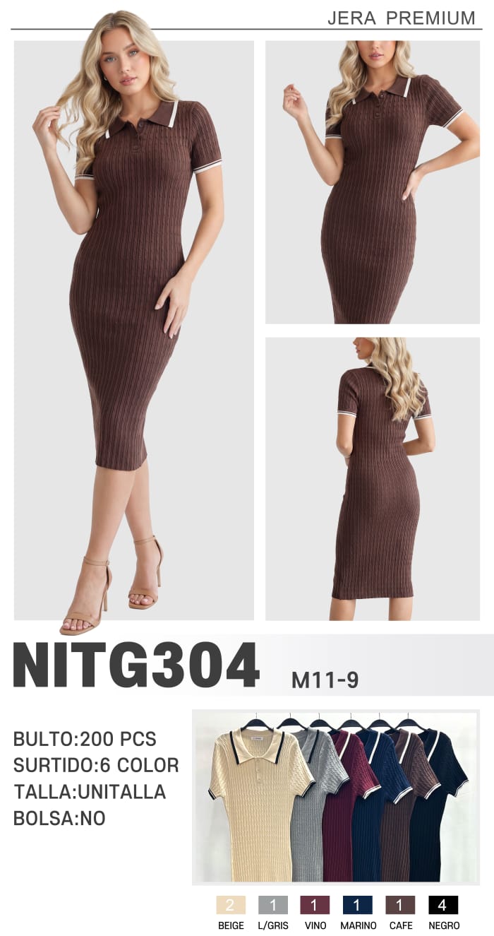 Vestido de punto tipo polo acanalado-NITG304