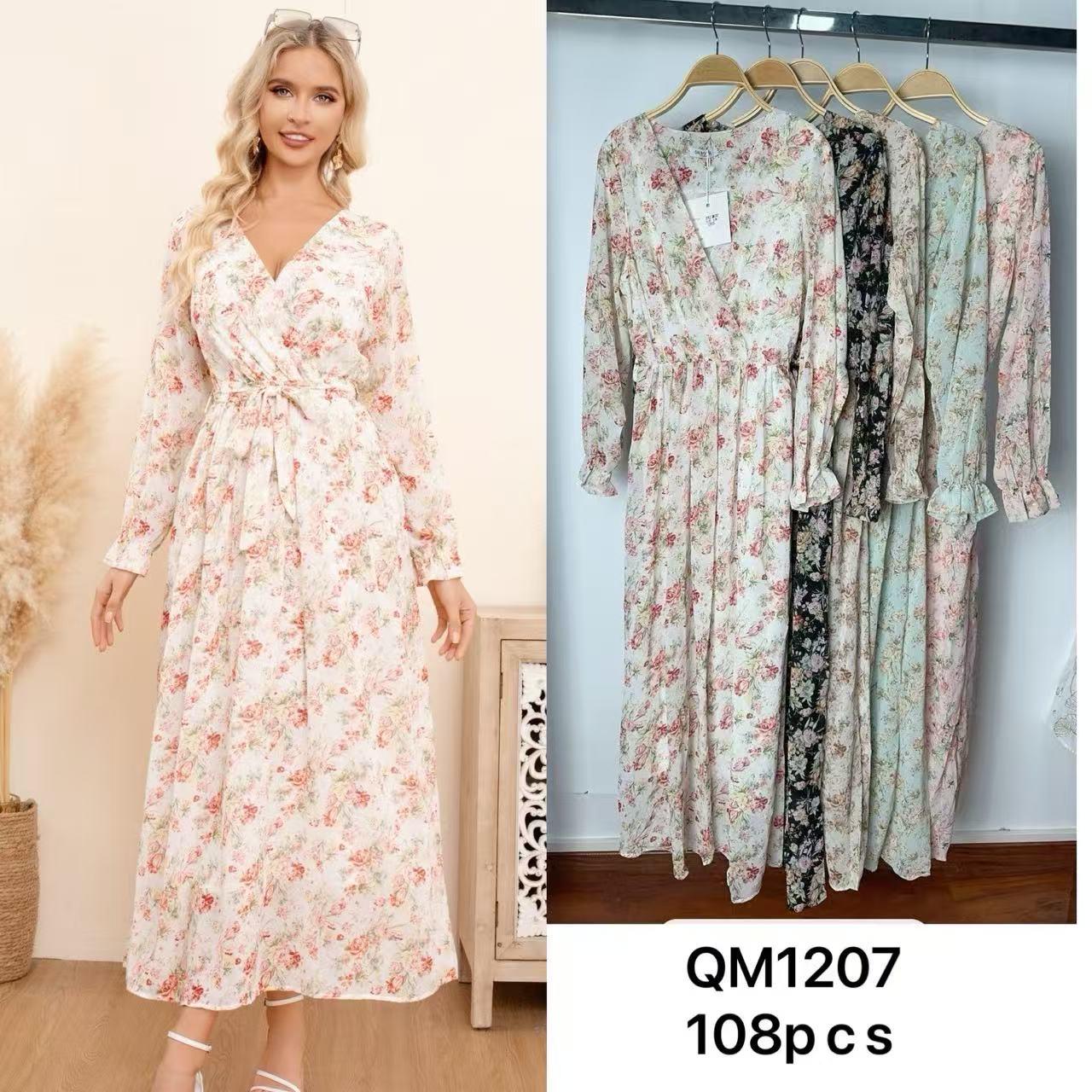 Vestido floral largo con cinturón-QM1207