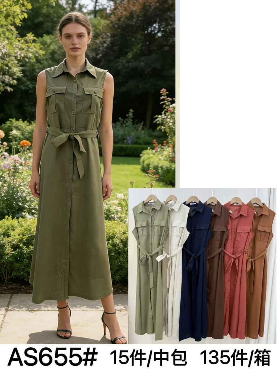 Vestido largo camisero sin mangas con cinturón-AS655