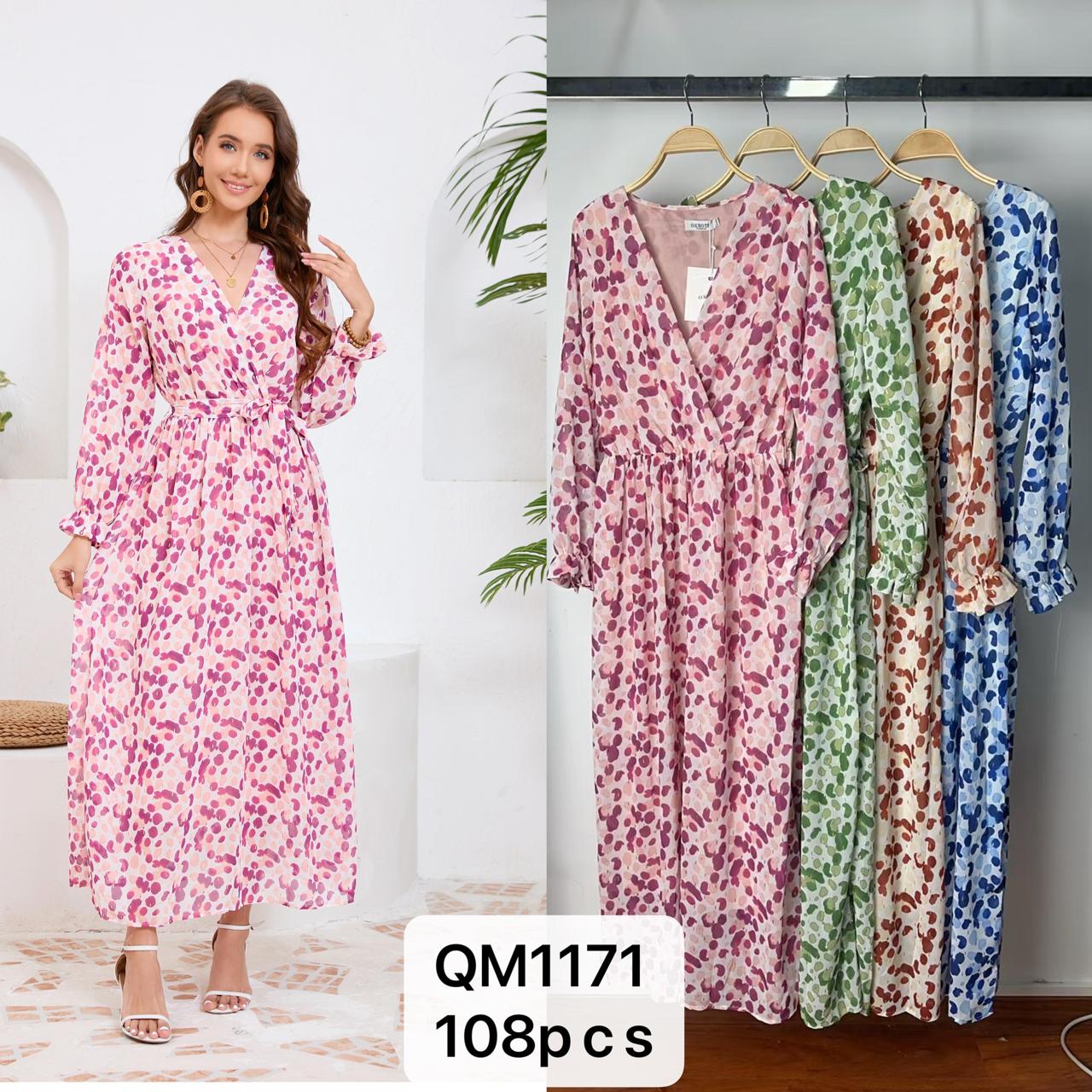 Vestido largo con estampado de puntos y cuello en V-QM1171
