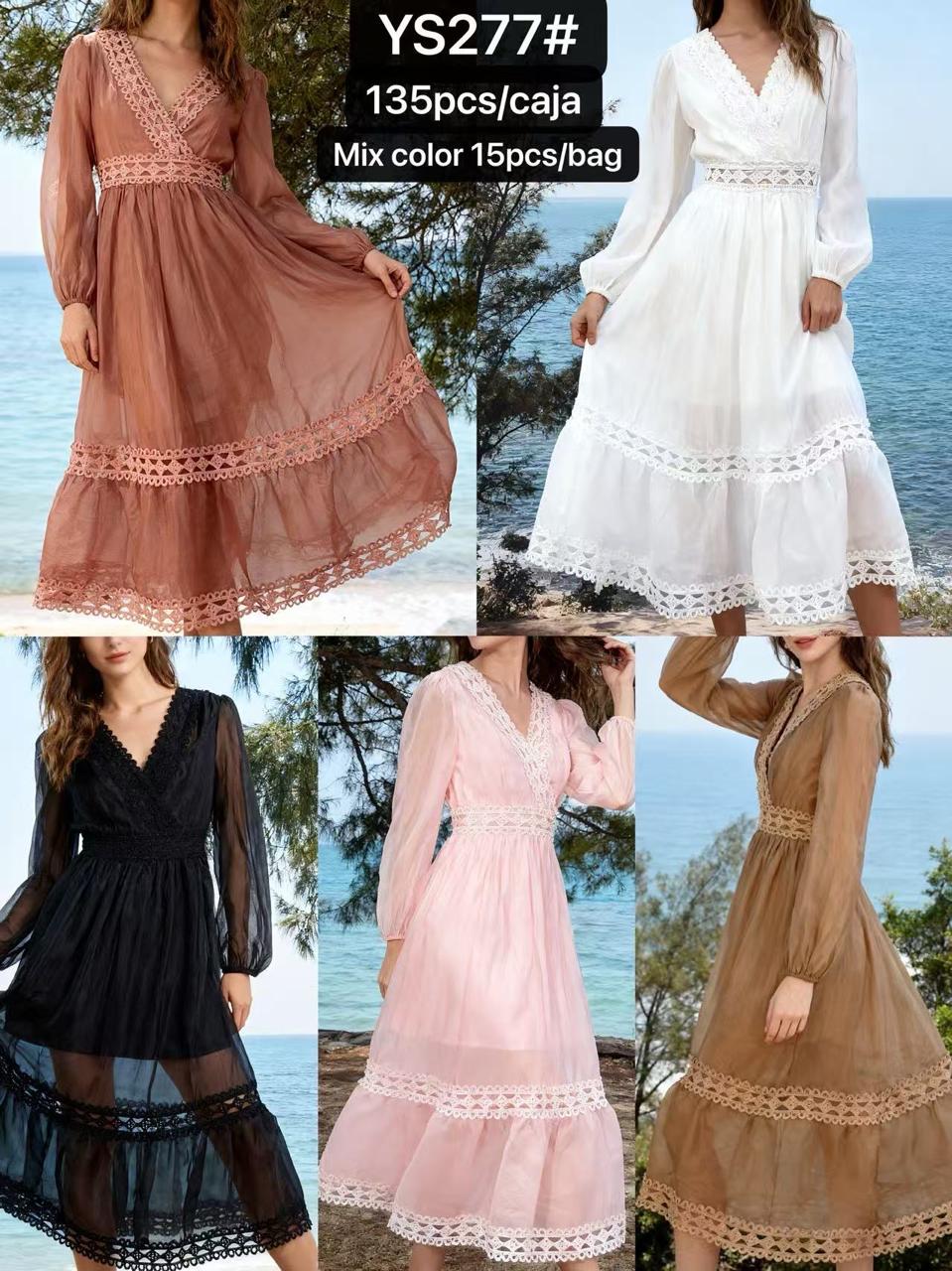 Vestido largo de encaje con cuello en V-YS277