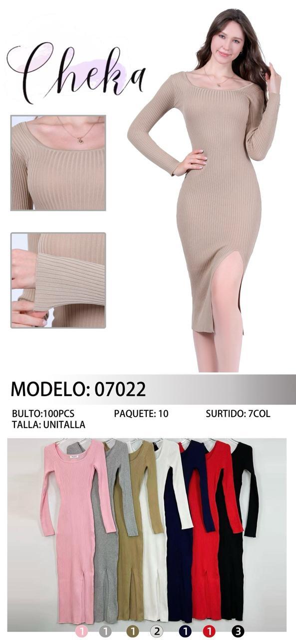 Vestido largo de punto acanalado con abertura lateral-VES07022