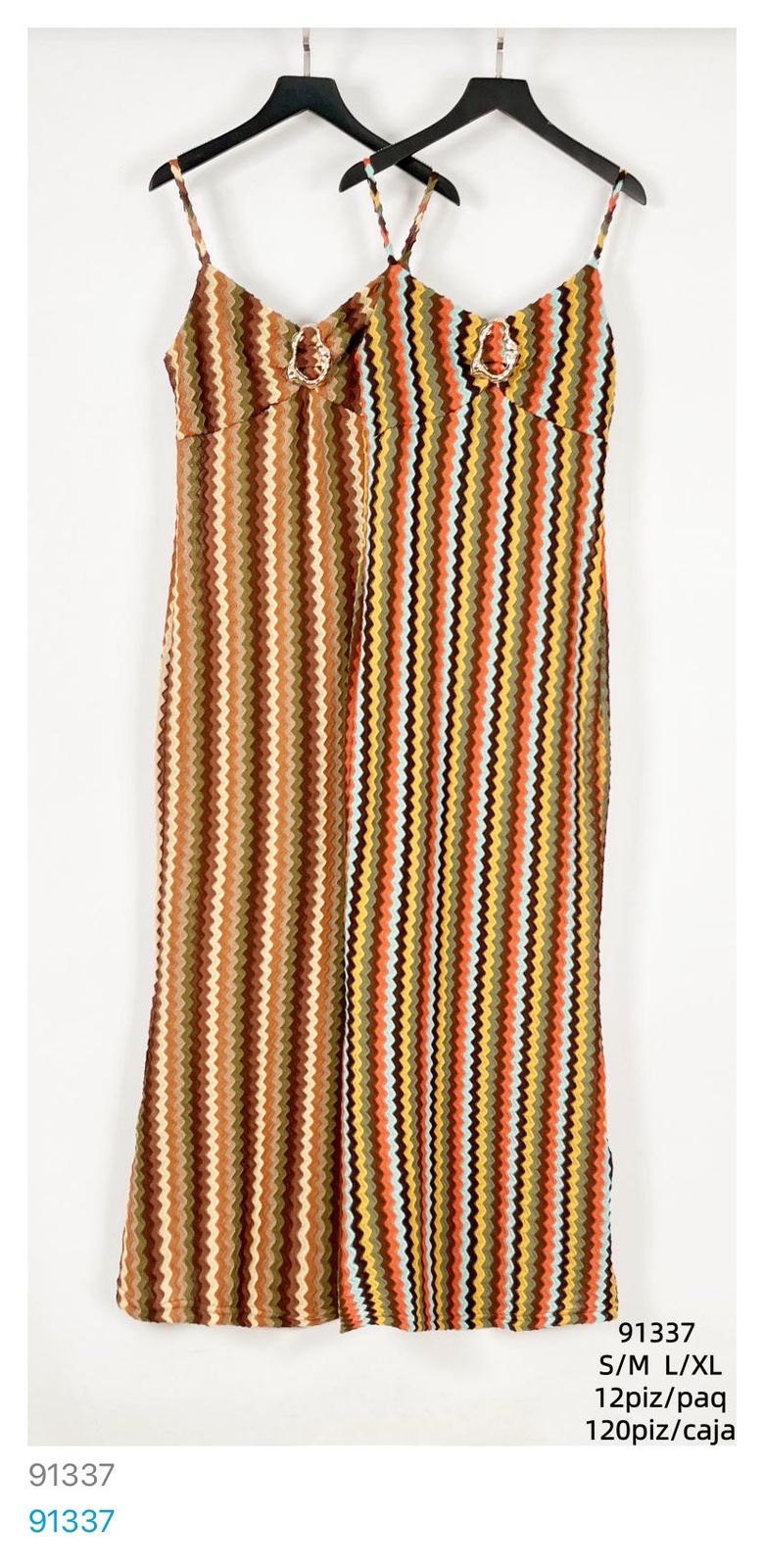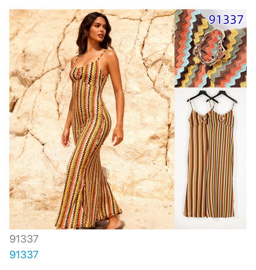 Vestido largo de tirantes con estampado ondulado-91337