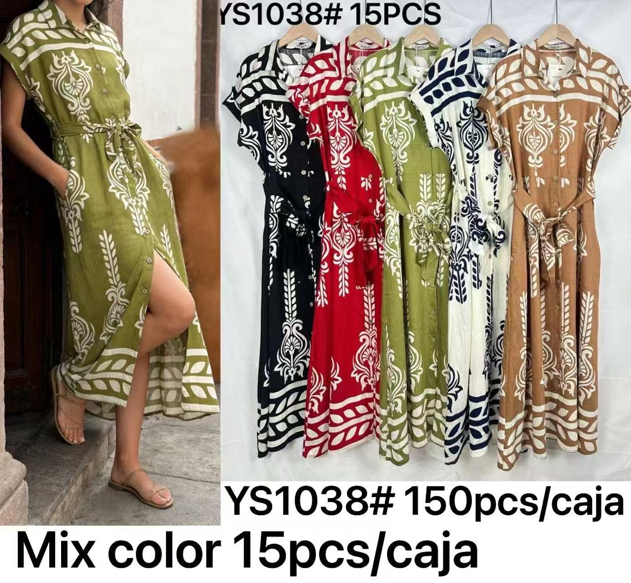 Vestido largo tipo camisero con estampado y cinturón-YS1038