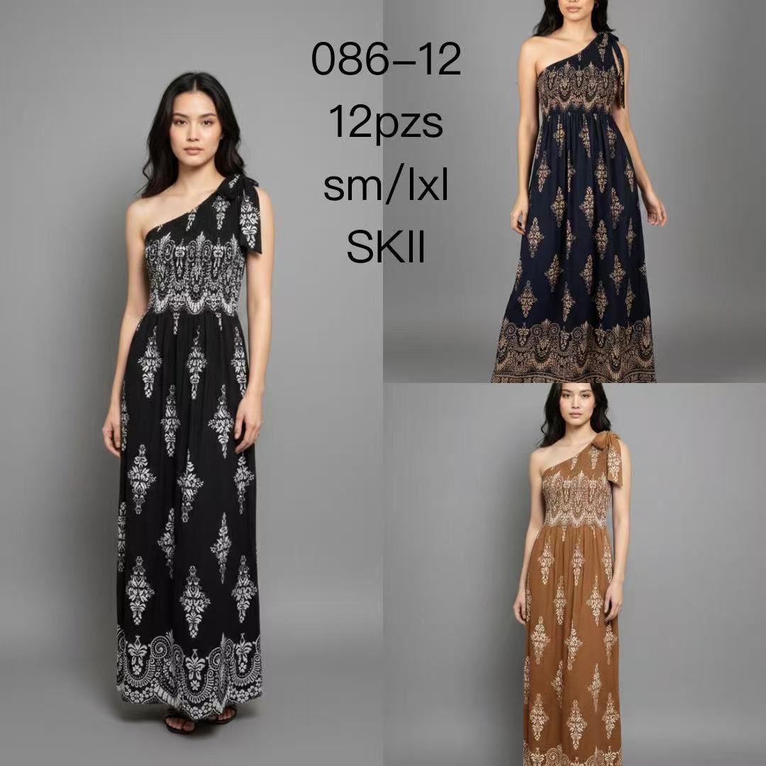 Vestido maxi de un hombro con detalle fruncido y estampado-086-12
