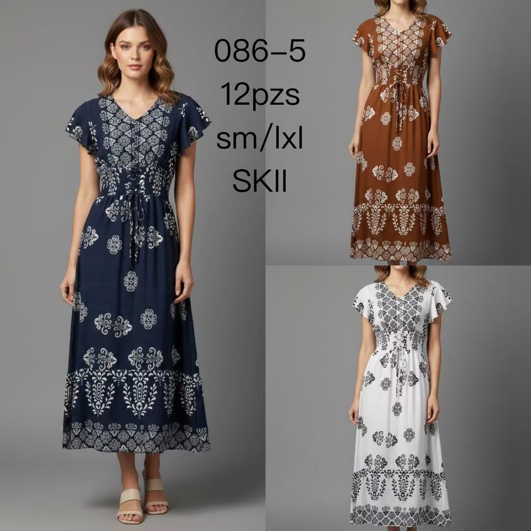 Vestido maxi estampado con cordón-086-5