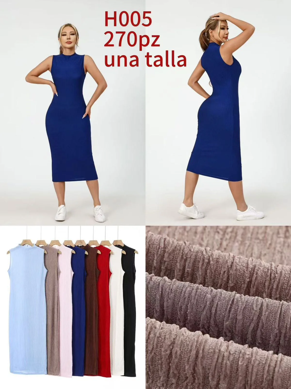 Vestido midi acanalado sin mangas-H005