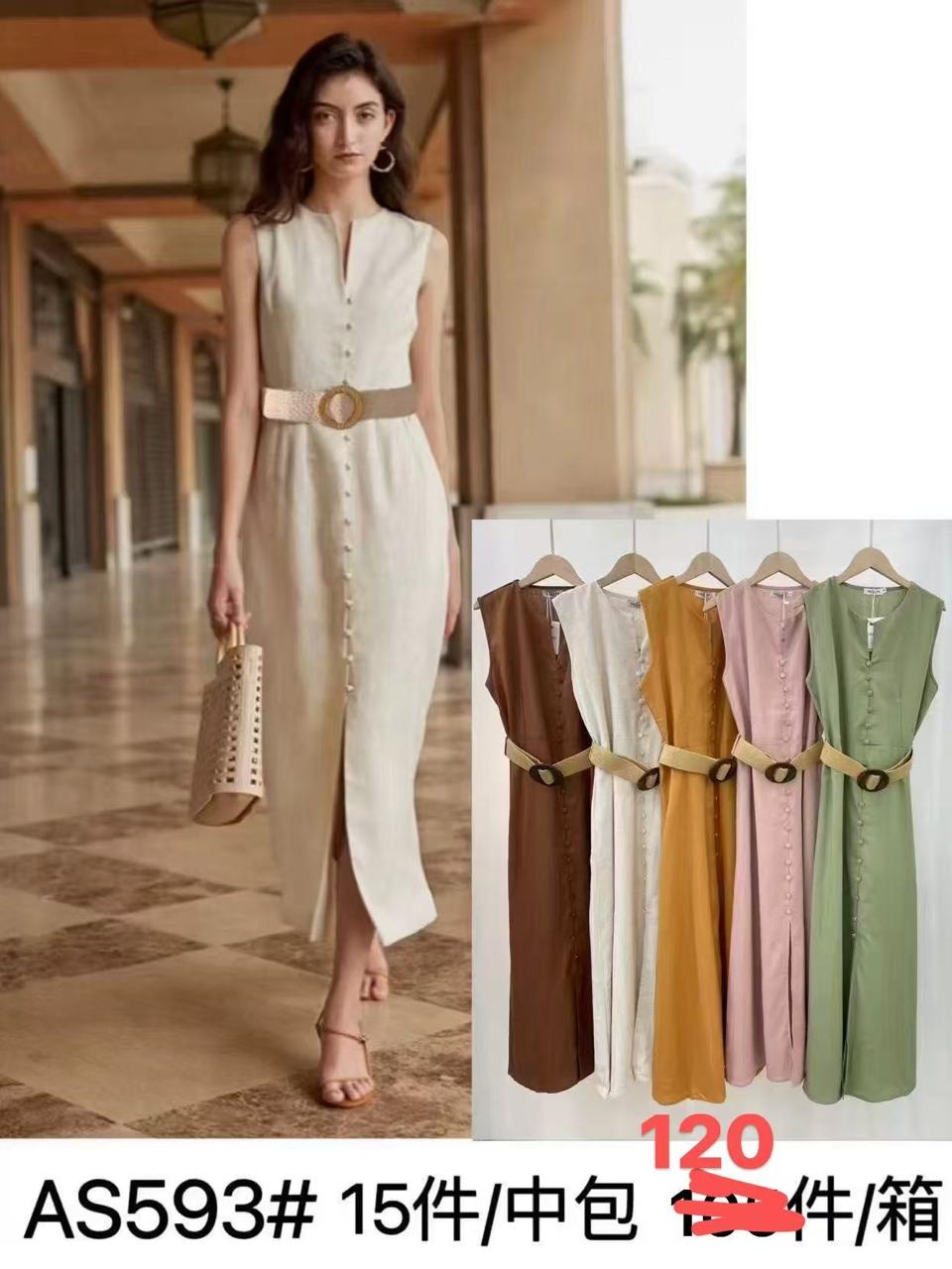 Vestido midi con botones y cinturón-AS593