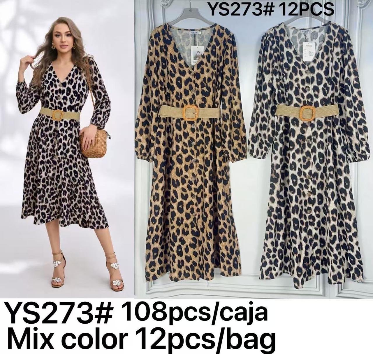 Vestido midi estampado animal print con cinturón-YS273
